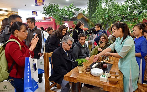 ▲记者团在世界特产小镇—特食荟国际购物街参与体验式购物