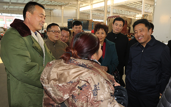 ▲周燕华厅长与商户在大棚亲切交流